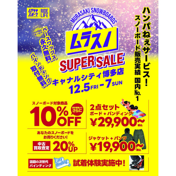 【附近店铺信息】MURASAKI SPORTS博多运河城店,滑雪板SUPER SALE这个名字也决定举办【ムラスノ】!